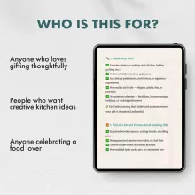 Finding the perfect gift for someone who loves to cook just got easier! Cooking Gifts That Delight Every Chef is your go-to digital checklist designed to help you choose meaningful, personalized cooking gifts that bring joy to every home chef, baker, or grill master. Whether you’re shopping for a birthday, holiday, or special milestone, this beautifully crafted guide will help you uncover what makes every chef smile — and make your gift unforgettable.