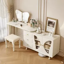 Cream Modern White Dressing Table with Mirror & Stool