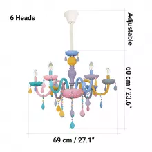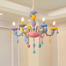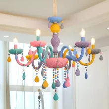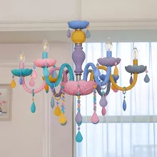 - Nordic-inspired macaron design with colorful glass shades and crystal accents