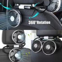 Dual-Head USB Car Fan with 360° Rotation and 3-Speed Cooling