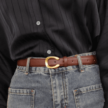 Unlike ordinary belts, this one is all about blending fashion with functionality. The faux leather gives you the luxe feel of genuine leather without the guilt. Its classic gold-tone buckle and contemporary detailing make it a standout piece that reflects your unique style.