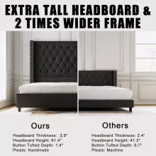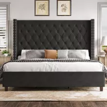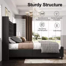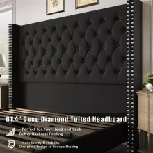 - Grand High Headboard: The majestic 61.4″ height offers a luxurious touch and extra comfort when sitting up in bed.