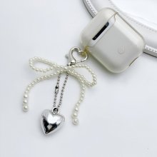 Elegant White Bowknot Heart Keychain