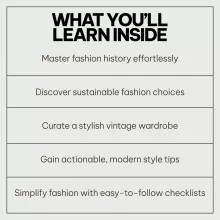 - Practical & Actionable – From learning how to shop vintage to mastering modern trends, the actionable tips and checklists are designed to help you put your newfound knowledge into practice.