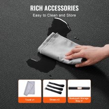 Clean-up is a breeze with the included soft fiber towel, while the carry strap and storage bag make this large mat easy to roll up and take anywhere. Whether you’re using it indoors or outdoors, this mat adapts to your lifestyle.