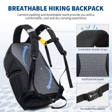 The backpack is equipped with a water bag outlet on the side, making hydration easy without the need to stop. No more fumbling for your water bottle while you’re on the go; simply sip as you hike! The breathable mesh and padded straps ensure comfort during long treks, allowing you to carry all your essentials without feeling weighed down. The reflective logo and straps add an extra layer of safety, making you visible during nighttime or low-light activities.