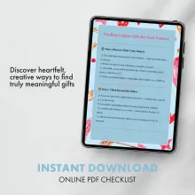 Looking for something truly special for the person you love? Finding Unique Gifts for Your Partner is the ultimate digital checklist that helps you uncover thoughtful, creative, and deeply personal gift ideas. Whether you’re celebrating an anniversary, birthday, or “just because” moment, this beautifully designed checklist makes it easy to find inspiration that goes beyond the ordinary. Learn how to find unique gifts for your partner with simple yet powerful steps that transform gift-giving into a meaningful experience. Perfect for anyone who wants to show love in a thoughtful, one-of-a-kind way.