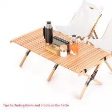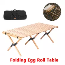 Folding Wooden Camping Table – Portable Beech Roll-Up Table for Outdoor Use