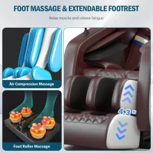 With three zero gravity positions, you can recline until your heart and knees align for a weightless, pressure-free state that enhances circulation and relieves back strain. Add to that the lower back heating function with a steady 113°F temperature — perfect for loosening tight muscles and easing chronic pain. The built-in foot rollers deliver a gentle kneading sensation that refreshes tired soles after hours on your feet.
