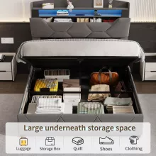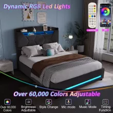 - RGB LED Lighting: Customize your bedroom ambiance with multi-color LED lights on the headboard and footboard for a relaxing or vibrant glow.