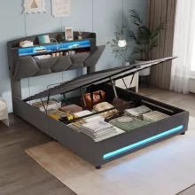 Upgrade your bedroom with the Full Lift-Up Storage Bed Frame with LED Lights & Charging Station. Enjoy more storage, effortless organization, and a modern aesthetic that fits seamlessly into your lifestyle. Turn your nightly routine into a moment of calm and your room into a space you’ll love coming home to.