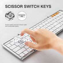 The smooth scissor-switch keys provide a quiet, laptop-like typing feel, perfect for quiet environments like libraries or shared workspaces. Non-slip pads underneath ensure it stays in place as you work, giving you stable, distraction-free typing wherever you are.