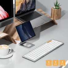 This wireless keyboard features a smart tri-fold design that folds down to just 8.4 x 4.7 inches, making it easy to slip into your laptop bag, backpack, or even a large purse. Weighing only 10.5 ounces, it’s lightweight yet crafted with a sturdy aluminum frame that’s built to last. Whether you’re working from a café, plane, or hotel room, this keyboard is your compact companion for productivity on the move.