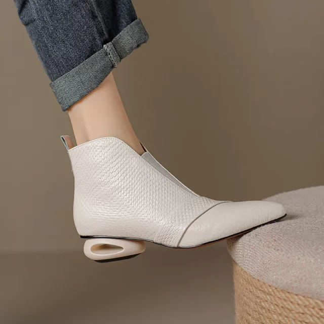 Made from premium cowhide leather, the exterior offers a polished, durable finish, while the short plush lining keeps your feet warm and comfortable during chilly autumn and winter days. The unique wedge heel not only elevates your height but also adds visual flair while offering stable support. A smooth side zipper makes slipping them on and off a breeze, and the ankle height pairs beautifully with everything from tailored pants to midi dresses.