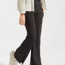 Made from a soft blend of spandex and polyester, they’re lightweight and breathable — ideal for long days of activity. The quick-dry fabric helps wick away sweat, keeping her cool and comfortable, while the elastic waistband ensures a snug yet flexible fit. The front slit adds a fashionable twist to a classic flare design, making these trousers just as great for casual outings as they are for sporty adventures.