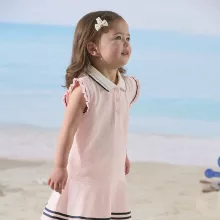 Let her shine this season in this adorable summer polo dress made for stylish girls who love to feel both comfy and cute. Perfect for every sunny day adventure, this charming A-line dress is designed to move with her—whether she’s running outdoors, heading to a birthday party, or enjoying a family day out. With its classic turn-down collar and soft knit texture, this dress brings together casual ease and sporty charm in one lovable piece.