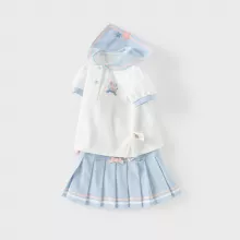 Crafted with care using a soft, lightweight blend of cotton and polyester, this outfit is ideal for warm-weather wear. The breathable knit fabric keeps your child cool and active all day. A classic single-breasted polo top with full sleeves adds a touch of sporty charm, while the coordinating skirt brings a playful and feminine flair. Cartoon accents give it an extra pop of personality girls will adore.