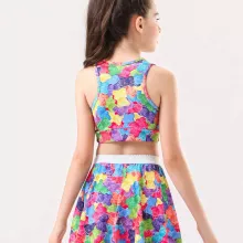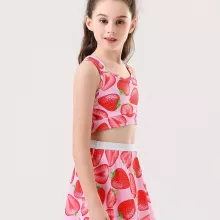 Crafted from a soft, stretchy blend of polyester and spandex, this outfit offers a snug fit that doesn’t restrict movement. The quick-drying, lightweight fabric makes it ideal for sunny days and high-energy activities. Available in cheerful colors like Strawberry, Cherry, and Colorful, your little one will feel confident and sporty every time she puts it on.
