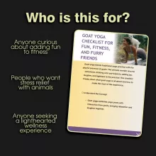 Unlike long guides that overcomplicate things, this checklist is quick, actionable, and fun to use. It goes beyond basic yoga tips by focusing on how to prepare for and enjoy the goats themselves—something many resources overlook. That makes it a truly practical companion for your goat yoga adventure.