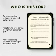 • Chapter 3: Popular Pet Memorial Gift Ideas – Explore personalized keepsakes, practical remembrance gifts, creative memorial options, and even DIY ideas for handmade tributes.