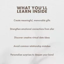 - Chapter 3: Prompts to Create Personalized Surprises – Get inspired with love letter prompts, virtual experience suggestions, and DIY gift ideas to keep things exciting.