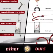 Every hook in this set is crafted with exquisite precision. From the perfectly curved points to the razor-sharp barbs, these treble hooks are made to pierce quickly and hold strong — reducing your chances of losing a catch. The red finish not only adds durability but also mimics the flash of blood to entice strikes. Whether you’re a weekend angler or a dedicated fishing enthusiast, these hooks are a must-have addition to your gear.