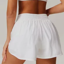 Made from a premium blend of 90% polyester and 10% spandex, these shorts are lightweight and breathable, ensuring you stay cool during the most intense workouts. The four-way stretch fabric conforms to your body, offering excellent freedom of movement and comfort. With several stylish colors to choose from—black, white, purple, and pink—you can easily mix and match with your favorite workout tops.