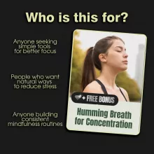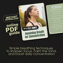 Bring clarity and calm into your busy life with Humming Breath for Concentration, a digital guide designed to help you sharpen focus, reduce stress, and build lasting mindfulness habits. Using the natural power of sound and rhythm, this guide offers a practical approach that blends ancient breathing techniques with modern tools like AI-powered tracking for consistency. Whether you need quick resets during the day or a structured daily routine, this resource shows you how to make humming breath a transformative part of your life.
