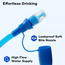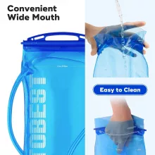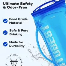 Crafted from high-quality, BPA-free PEVA material, this water bladder is not only safe and odor-free, but also certified by SGS and FDA standards. With a wide opening and upgraded sliding seal, it’s incredibly easy to fill, clean, and dry. A soft bite valve with a twist shut-off switch ensures you can drink effortlessly while on the move, without worrying about leaks or spills. Plus, a protective cap keeps the mouthpiece clean and ready at all times.