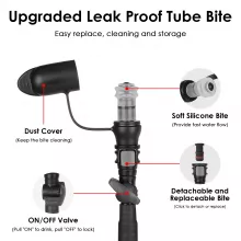 - Detachable bite valve with ON/OFF switch prevents leaks and controls flow