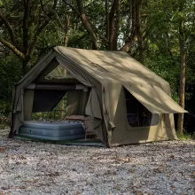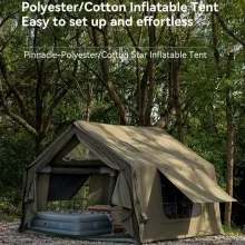 Built to withstand all four seasons, the tent features a built-in stove jack, allowing safe use of wood stoves for warmth during chilly nights. Whether you’re camping in the summer sun, autumn breeze, or snowy winter, this inflatable tent is your reliable outdoor shelter. Crafted from eco-friendly, waterproof materials and PVC-coated frame, it combines comfort and durability without compromising on environmental responsibility.