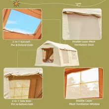 Made for effortless setup, the inflatable frame eliminates the need for complicated poles—just unpack, inflate, and enjoy. Its waterproof and windproof construction ensures you stay dry and secure, even when the weather turns. The built-in canopy extends your living space, offering shade and shelter for lounging, cooking, or simply enjoying the view.