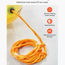 Crafted from ultra-durable, 0.75mm thick PVC, this booster ball is made to withstand the wear and tear of high-speed aquatic adventures. Its tear-resistant, high-tensile material ensures longevity even with frequent use. The strong, multi-strand PE tow rope boasts a tensile strength of up to 680 lbs, delivering both performance and peace of mind. Plus, with its vivid color design, the booster ball stays visible in any water condition, adding both safety and flair to your boating setup.