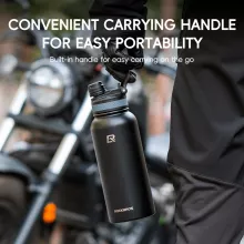 Crafted from high-grade 304 stainless steel with a leak-proof silicone seal, this bottle is tough, safe, and built for repeated use. The wide mouth opening makes it easy to fill, clean, or drop in a few ice cubes, while the integrated carrying handle means it’s always ready to go.