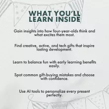 - Chapter 2: Gift Categories That Grow with Them — Explore creative, active, learning, and tech & AI gifts that evolve with your child.