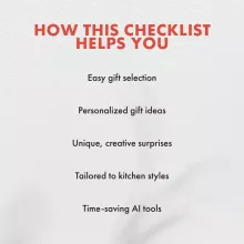 Unlike other generic kitchen gift guides, this checklist provides tailored suggestions based on real needs and interests. The easy-to-follow format, combined with smart AI-based tips for price tracking and personalized recommendations, ensures you find the ideal gift for any occasion. You’ll never be left wondering what to buy again!