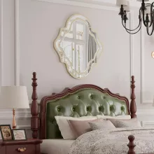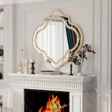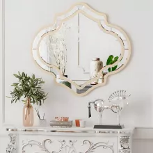 Bring a touch of glamour and sophistication to your home with this Large Irregular Wall Mirror featuring a stunning light golden rim. Designed with a modern farmhouse flair, this decorative accent mirror adds elegance and warmth to any interior. Its unique irregular shape and beveled edges create a striking focal point that enhances both classic and contemporary spaces. Whether displayed in your living room, bedroom, hallway, or entryway, this mirror reflects light beautifully and opens up your space with style.