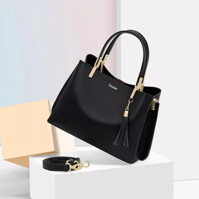 Crafted from quality split leather with a smooth polyester lining, this bag feels luxurious yet durable. Its subtle letter pattern adds a modern edge without overpowering your look. Whether you carry it by hand or sling it over your shoulder, this tote moves with you—and keeps you organized along the way.