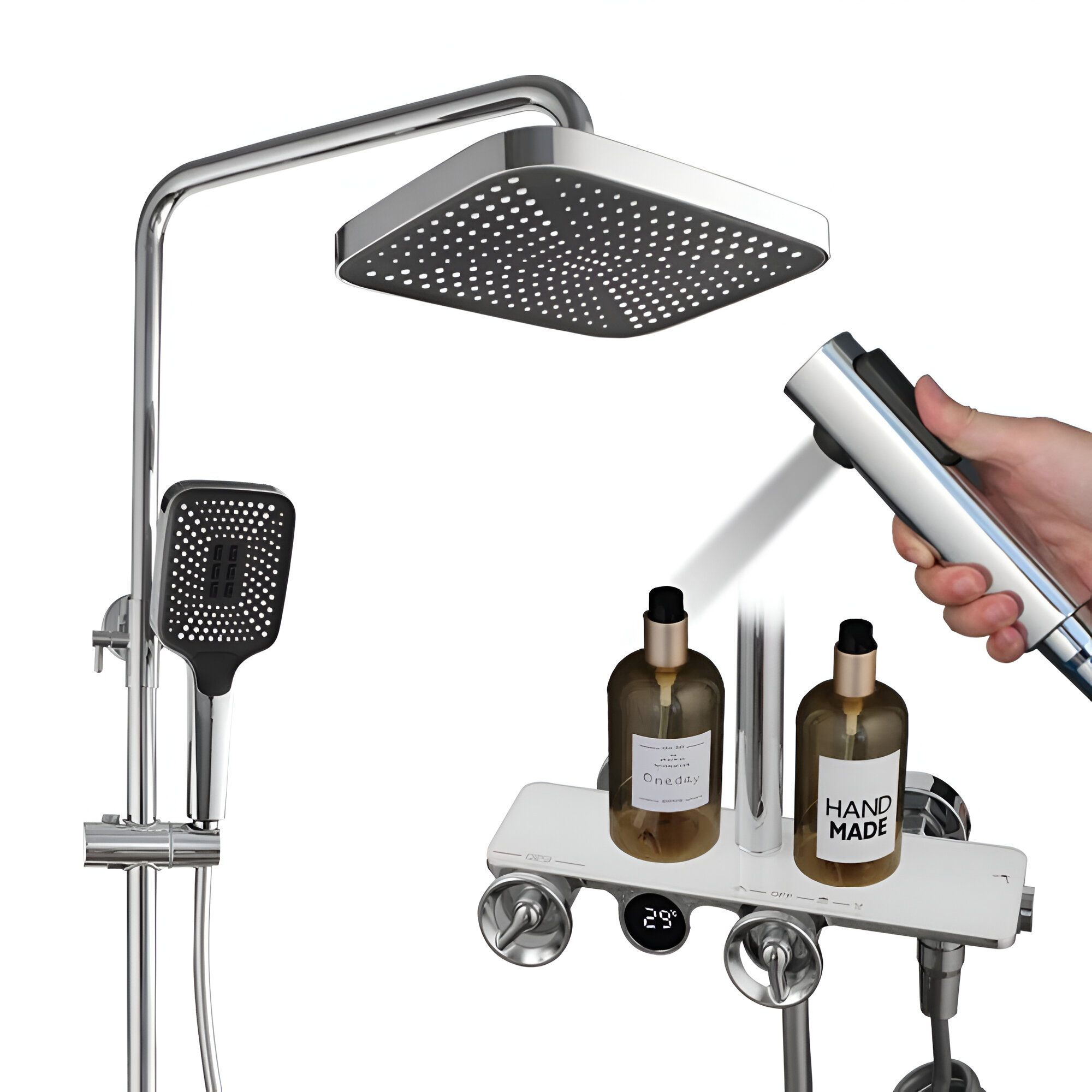 Transform your daily shower into a spa-like experience with the LED Thermostatic Digital Shower System. Designed for modern homes, this stylish and functional shower set combines advanced technology, sleek design, and durable craftsmanship to deliver the ultimate comfort and control. The built-in digital temperature display lets you enjoy perfectly balanced water every time — no more guessing or sudden temperature changes. Perfect for anyone who values both elegance and practicality in their bathroom.