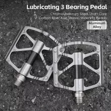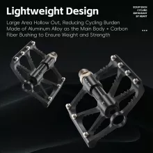 Constructed from a high-grade blend of aluminum alloy, carbon fiber bushing, and chromium molybdenum steel, these pedals are made to handle the toughest terrains while staying light on your feet. Each pair weighs only about 10.2 oz, making them ideal for cyclists who want speed without sacrificing strength. A sleek, anti-slip design ensures your feet stay locked in even in wet or uneven conditions. Plus, the widened tread design adds extra stability when it matters most.