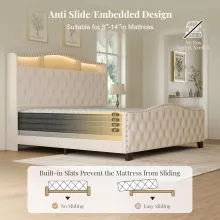 Transform your bedroom into a sanctuary of comfort and style with our Luxurious King Size Velvet Bed Frame. Featuring a stunning 50.9-inch tall wingback headboard, this bed frame combines modern elegance with practicality. The sumptuous velvet upholstery and deep button tufting not only provide a touch of luxury but also offer superior back support for lounging or reading in bed. With the added bonus of dynamic RGB LED lighting, you can customize your bedroom ambiance to fit your mood.