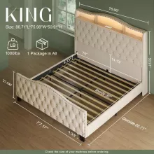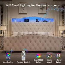 This beautifully designed bed frame is more than just a place to sleep; it’s an entire experience. The built-in LED strip offers over 60,000 vibrant colors and multiple lighting modes, easily adjustable via a remote or smartphone app. Whether you want calming lights for a cozy night in or vibrant hues for a lively atmosphere, this bed frame has you covered. Additionally, the integrated charging station with multiple outlets and USB ports means you can keep all your devices charged and within reach, eliminating clutter and distractions.