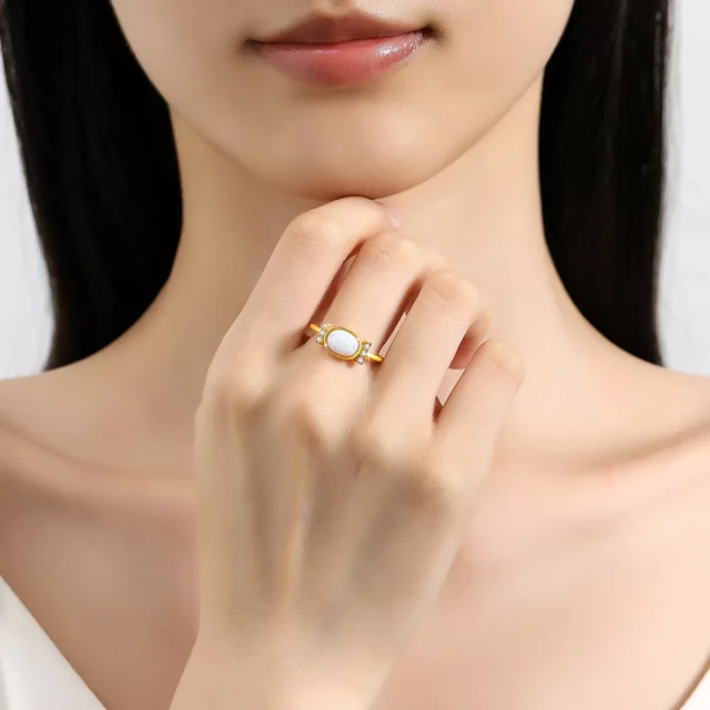 This ring is ideal for engagements, weddings, anniversaries, or simply to show someone how special they are. The opal’s natural play of color adds a dreamy touch, while the gold band delivers long-lasting luxury. It’s a cherished piece for women who appreciate unique and meaningful jewelry.