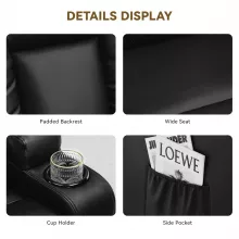 Stay organized and comfortable with thoughtfully designed features. Dual cup holders keep your drinks secure, while the handy side pocket offers space for your phone, remote, or magazines. Say goodbye to spills and clutter—everything you need is within easy reach.