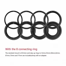 • Multiple adapter rings (52mm–77mm) to fit a wide range of lenses
