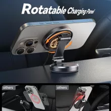 Enjoy total control over your viewing angle with a 360° rotatable charging panel and base. Whether you’re navigating, taking calls, or streaming music, you can adjust the holder to the perfect position without blocking your view. The all-metal foldable body crafted from durable aluminum alloy ensures long-lasting performance and a sleek, premium look that complements any car interior.