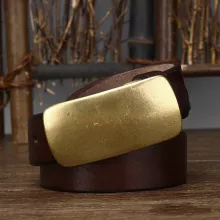 Refined style meets everyday function with this premium 1.3-inch wide genuine leather belt. Crafted from the finest first-layer cowskin, this belt is the ideal blend of elegance, strength, and comfort. Whether you’re heading into the office or dressing up for a night out, this belt brings polished style to any outfit. Its smooth, solid brass buckle adds a bold, sophisticated touch, while the soft, supple leather ages beautifully with time, developing a rich patina that’s unique to you.
