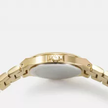 Enhance your wristwear collection with this stunning Women’s Gold Stainless Steel Quartz Watch. Designed for the modern woman who values both sophistication and simplicity, this watch combines timeless elegance with reliable performance. Its radiant gold finish, paired with rhinestone detailing and a pearl-toned display, creates a statement piece perfect for any occasion.