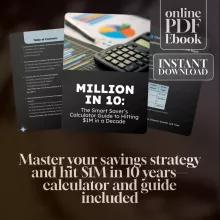 What if you had a step-by-step roadmap to grow your savings into a million dollars in just 10 years—no fluff, no guesswork, just real math, real tools, and real results? Million in 10: The Smart Saver’s Calculator Guide to Hitting $1M in a Decade is your no-nonsense digital guide and calculator combo created to help ambitious savers turn a bold goal into a concrete plan. Whether you’re starting from scratch or scaling up, this easy-to-follow eBook walks you through exactly how to save a million dollars in 10 years using proven strategies, smart investing, and habit-building tools.