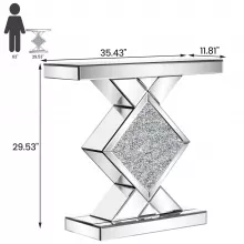 The console table stands out with its unique diamond-shaped pedestal base, beautifully inset with sparkling crystals. This sculptural design doesn’t just support the tabletop — it transforms the piece into a true work of art. The rectangular top (31.5” L x 11.4” W) provides ample space to display your favorite décor: a lamp, floral arrangement, books, or framed photos. Its reflective surfaces and glittering details instantly bring a sophisticated sparkle to your home.